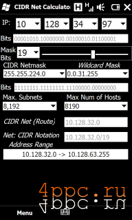 Скриншот CIDR Network CalculatorСкриншот CIDR Network CalculatorПриложение может рассчитать подсети и биты, обратную маску и количество хостов и подсетей. Диапазон IP уже почти работает. Это бета, протестированная только на нескольких устройствах.