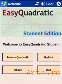 Скриншот EasyQuadraticСкриншот EasyQuadraticДанная программа позволяет решать квадратные уравнения. Поможет всем, кто хочет, но не умеет решать оные. Больше о программе сказать нечего, разве что очень простой дизайн и удобная навигация.