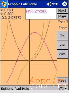 Программа поддерживает 18 самых распространенных тригонометрических функций, кроме того, позволяет расчитывать факториалы и извлекать корень любой степени из любого числа. Строит графики функций.
